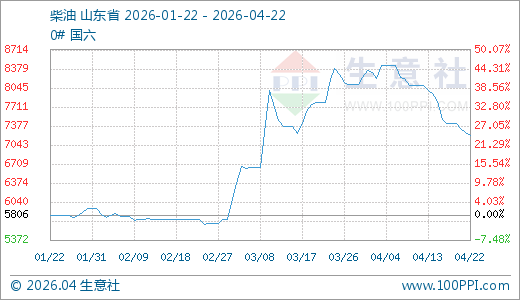 证券金融信息服务平台 04月22日柴油7201.71元/吨 60天上涨25.52%